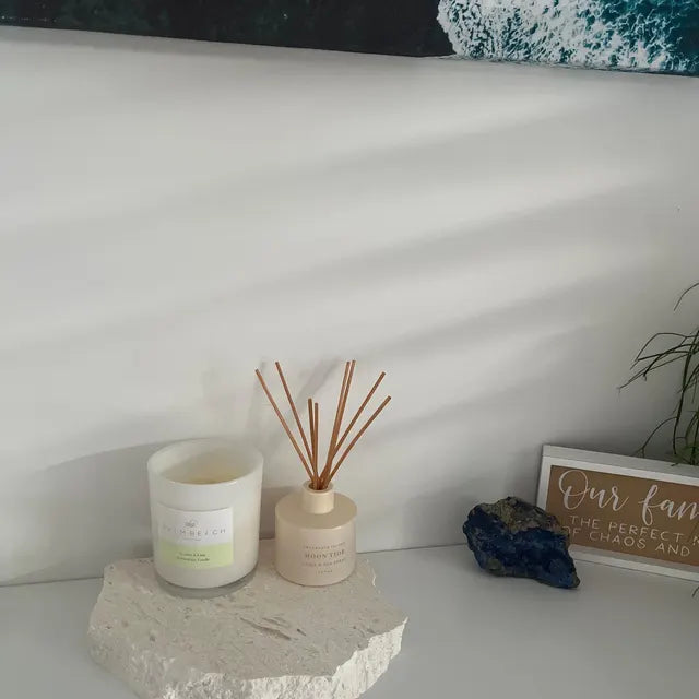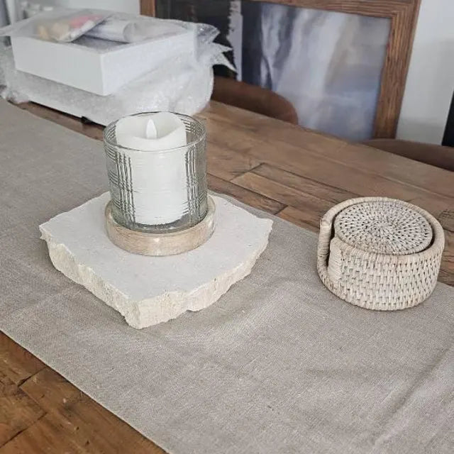 Limestone slabs are perfect for table decorations. Stack numerous pieces to create a luxurious stand for a vase or candle display. These act as a perfect drip tray so the candle wax doesn't burn your table cloth!
